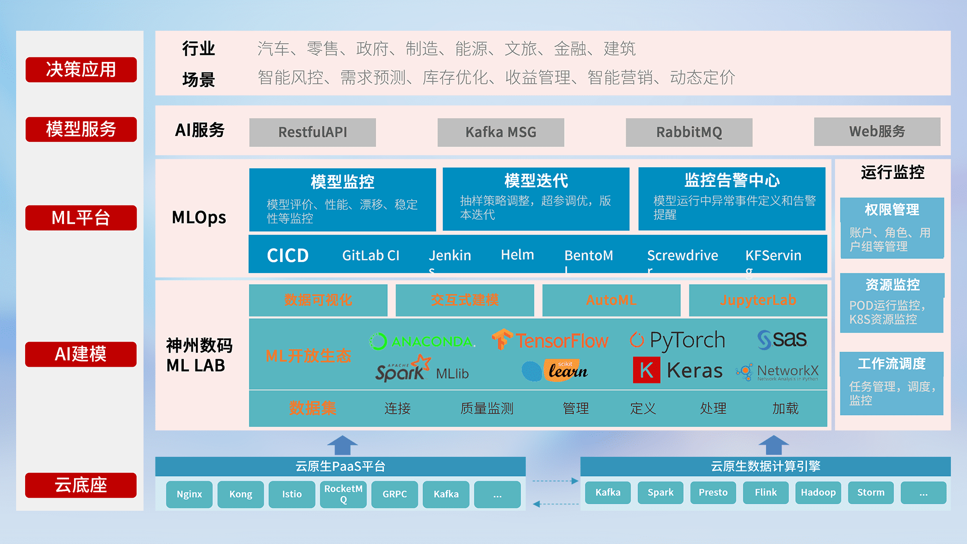 数据+模型双引擎驱动,,面向智能服务场景,,,快速灵活利用AI技术,,,支持业务决策,,助力企业智能化转型破局。。。。